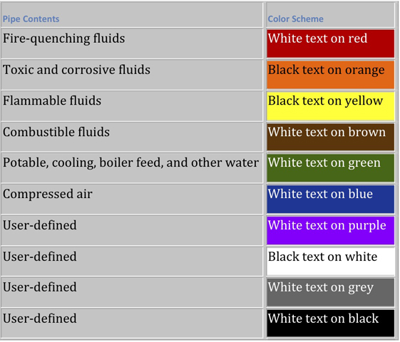 (Source: http://www.duralabel.com/articles/ansi-color-codes-pipes.php ; June 9, 2012)