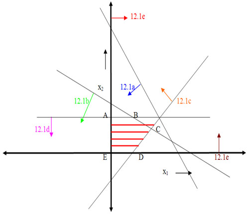 Thus we have from the table: and . Here a colouring scheme has been employed to make the concepts clear when one refers to the diagrams given later. Finally the other constraints are: and . Thus the problem is as given below and for illustration the reader is requested to refer to Figure 12.1.