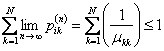 Now for a Markov chain in which the states are aperiodic, persistent non-null, then for every pair, we have , and as is persistent, hence , which means that and is independent of . Also the sums of rows should add up to 1 (in the limiting sense), i.e., , where set , such that , such that .