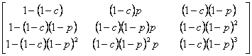 Consider the same problem as given above and consider it having three (3) outcomes, such that the outcomes of any trails are dependent on the outcomes of the previous trial. The transition probability matrix is considered as . We also know that there are three states given by 0, 1, 2, such that , and , and . With this information find (i) , and , (ii) and .