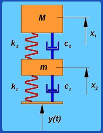 What is shown in Fig. 6.2.3 is a two degree of freedom system. With reference to automobile applications, this is referred as “quarter car” model. The bottom mass refers to mass of axle, wheel etc components which are below the suspension spring and the top mass refers to the mass of the portion of the car and passenger. Since we need to specify both the top and bottom mass positions to completely specify the system, this becomes a two degree of freedom system.
