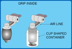 Gripper (figure 3.3.3) This pneumatic gripper (balloon shaped) is being used to pickup hollow cylindrical objects by gripping them on the inside surface.