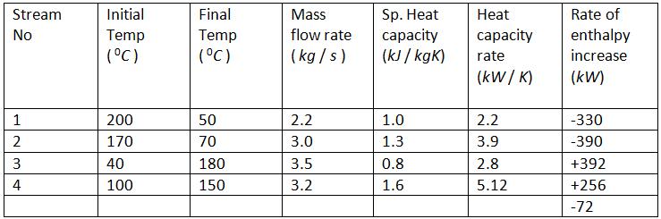 Table 1.9 Data for 4 (four) fluid streams