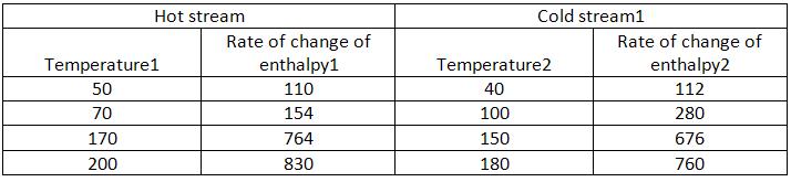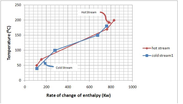 The two composite streams are then plotted on a temperature heat load graph. The temperature and rate of change of enthalpy for cold stream and hot stream are estimated in Table 1.12.