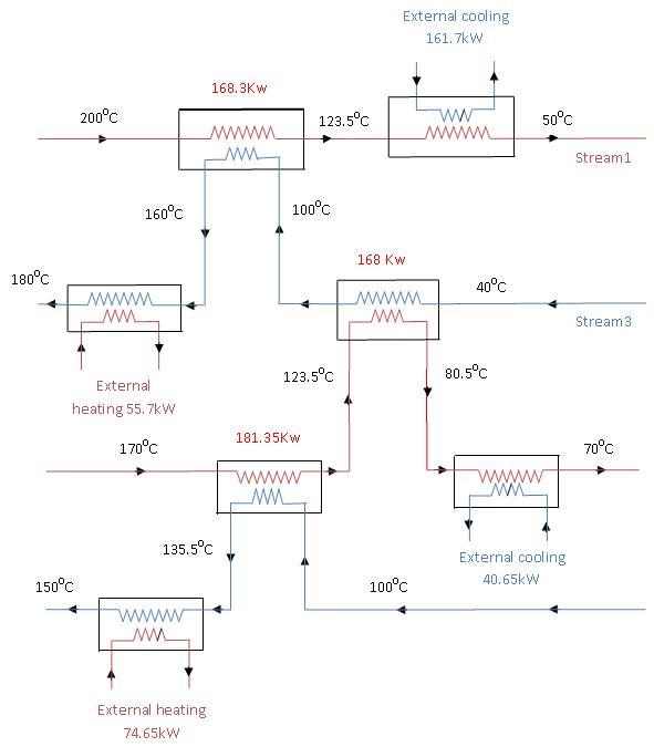 130.35 kW. Similarly, stream 1 and 3 are to be cooled externally with 161.7