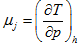 The numerical value of the slope of an is enthalpe on the T - p diagram at any point is called the Joule –Thompson coefficient µj.