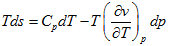 The second term in the above equation stands only for a real gas, because for an ideal gas dh = CpdT