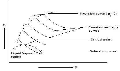 Locus of all points at which µj is zero is the inversion curve. The region inside the inversion curve where µj is negative is called the heating region and where µj is positive is called the cooling region.
