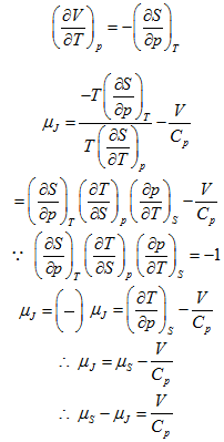 Joule-Kelvin coefficient µj is a measure of the temperature change during a throttling process. A similar measure of temperature change produced by an isentropic change of pressure is provided by the coefficient µs where