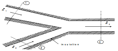 Two fluid streams 1 and 2 of an incompressible fluid or ideal gas mixing adiabatically at constant pressure as shown in Fig. 1.29.