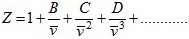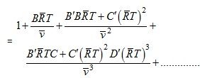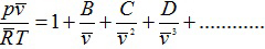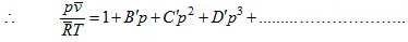 Both expressions in Eqs.(2.146) and (2.147) are known as virial expansions or virial equations of state, first introduced by the Dutch physicist, Kammerlingh onnes B´, C´, B, C,…….. etc. are called virial coefficients. B´ and B are called second virial coefficients, C´ and C are called third virial coefficients, and so on. For a given gas, these coefficients are functions of temperature only.
