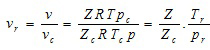 Where the subscript r and c refer to the reduced and critical properties, respectively.