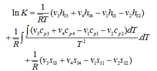 ln K = -(v3Φ3 + v4Φ4 - v1Φ1 - v2Φ2) |