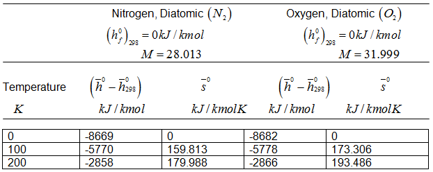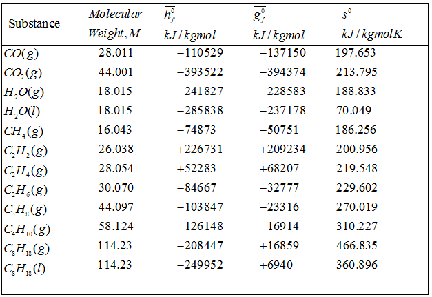 Table 3.4 Enthalpy of Formation, Gibbs Function of Formation, and Absolute Entropy of Various Substance at 25° C, 1 atm pressure