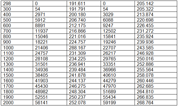 Table 3.5 Enthalpy of formation at 25° C, ideal gas enthalpy, and Absolute Entropy at 0.1 MPa (1bar) Pressure