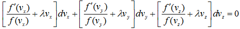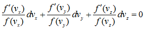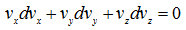 Since vx, vy and vz are now independent variables, the coefficients of dvx, dvy and dvz are individually equated to zero.