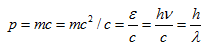 where c is the velocity of light ( 3 X 108 m/s). For a photon ( photon does not have mass but has momentum) of electromagnetic radiation, Planck's equation gives,