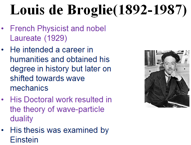 de Broglie equation relates the momentum of the photon ( or electron) with its wave length, representing the wave-particle duality. The total energy ε and mass of a moving particle m are related by Einstein's famous equation,