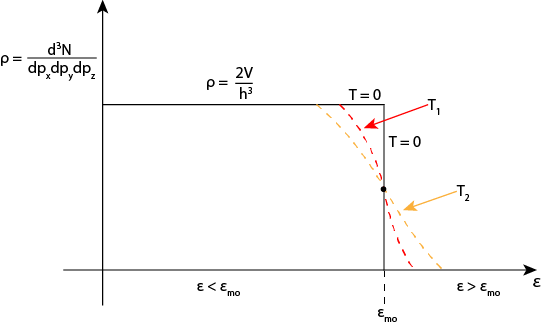 Figure 5.4 represents the distribution in momentum space of Fermi-Dirac statistics at T = 0 and two other temperature T1 and T2