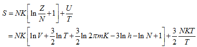 This is known as the Sackur-Tetrode equation for the absolute entropy of a monoatomic ideal gas. It is seen that