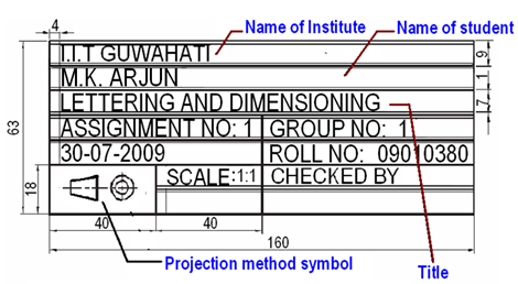 Lettering is used for writing of titles, sub-titles, dimensions, scales and other details on a drawing. Typical lettering features used for engineering drawing is shown in figure 3. The following rules are to be followed in lettering. The letter sizes generally recommended for various items are shown in Table 1.