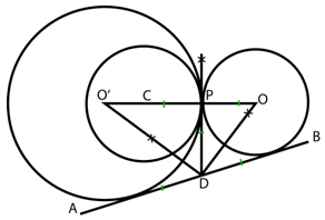 - Draw bisector of angle PDB to intersect the line through C and P at O.