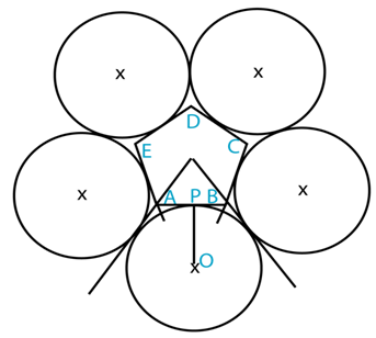 Figure 9 shows the method of drawing outside a regular polygon, the same number of equal circles as the sides of the polygon,