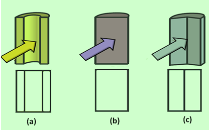 Figure 3 shows the pictorial view and front view of sectioned part of (a) a hollow cylindrical object (b) solid cylindrical object and (c) solid cylinder split in to two unequal parts.