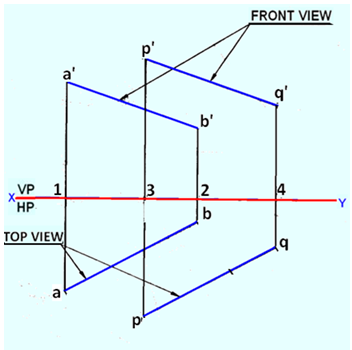 Figure 5. The projections of lines AB and PQ for problem 3.