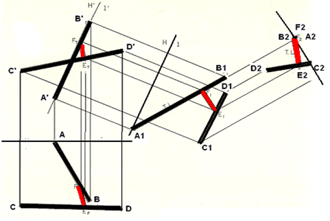 First an Auxiliary A1B1 is made showing the true length of AB.