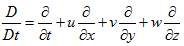 Examining this equation closely, we can obtain an expression for the substantial derivative in cartesian coordinates. That is