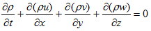 This is the continuity equation in the form of a partial differential equation. This is the conservation form of equation. For unsteady, compressible and three dimensional flow the Equation (2.11) can be expressed as