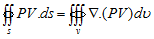 Applying the divergence theorem to the surface integrals given in the above equation, we get