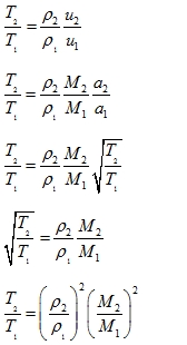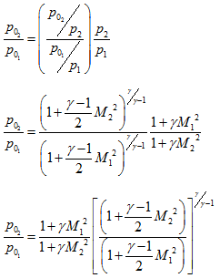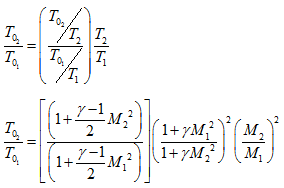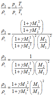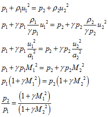 Lets represent the ratios of static and total properties in terms of upstream (station 1) and downstream (station 2) Mach number and specific heat ratio. Lets consider the momentum equation,