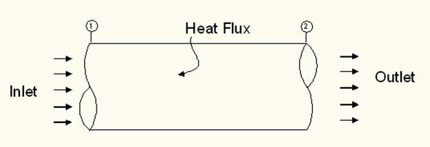 Consider the control volume as shown in Fig. 11.1 for 1D flow with heat addition. The fluid flow of this kind is called as Raylaigh flow. Here station 1 is representative station before heat addition while station 2 is representative station after heat addition. This control volume is necessarily a constant cross-section pipe hence variation is the inviscid flow properties is expected in the direction of the flow due to addition of heat.
