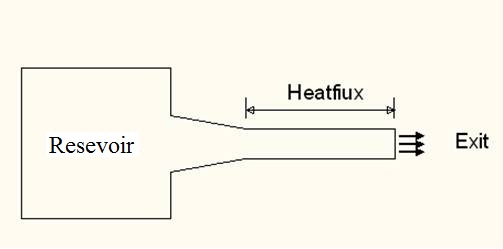 The h-s plot shown for heat addition process in Fig. 12.2 belongs to a perticular value of mass flow rate. If we change the mass flow rate then the curve changes. Hence we need to find out the new curve in case of decreased or increased mass flow rate conditions. Consider the proposed experimental set up shown in Fig. 13.3 for the Rayleigh flow studies. Here we can change the mass flow rate by changing the reservior conditions (pressure and temperature) and also the exit pressure. During the experiment, gas stored in the reservoir expands through the nozzle and achieves certain mass flow rate while flowing through the constant area duct where heat addition takes place. We are going to learn the topic "flow through nozzle" in detail in the comming lectures, however for now, we can assume that, mass flow rate for subsonic flow can be increased by decreasing the exit pressure or increaseing the reservoir pressure. Simillarly, we can increase the mass flow rate of supersonic flow by increase in recervior pressure or by decreasing the reservoir temperature.