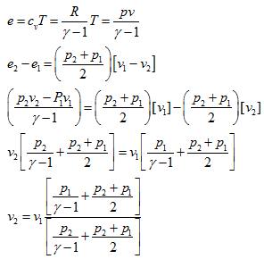 We can plot the Hugoniot curve for the known initial pressure-volume conditions for various pressure-volume conditions after normal shock. Hence Hugoniot curve, in principle, joins all the possible points on p-v plane starting from a known point on p-v plane. To generate such a plot we have to modify the Hugoniot equation by expressing the internal energy in terms of the pressure and volume as,
