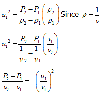 Therefore if we know the mass flow rate and initial conditions we can easilty find out the post shock conditions. These conditions are given by point of intersection of Hugoniot curve and the straighline drawn from initial conditions with slope equation given by eq. (8.2).