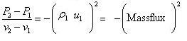 This expression gives the slope of a straight line joining two points of Hugoniot curve, mainly initial point and any other point on the Hugoniot curve on p-v diagram. These two points necessarily define the upstream and downstream locations of the normal shock respectively. Since this expression is for slope and is comprised of velocity and density (inverse of specific volume), this line necessarily corresponds to a particular mass flow rate.
