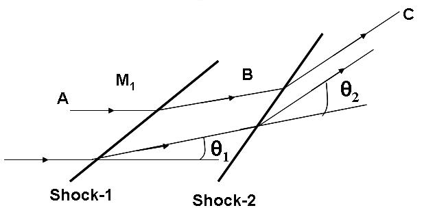 Fig. 21.3 Supersonic flow passing through two left running shock waves