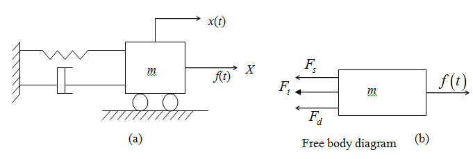 is given to the mass m , as shown in Fig. 2.1.4(b), spring force, damping force and inertia force will act in a direction opposite to that of the external force