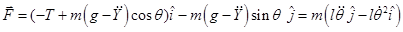 Separating the ith and jth component of the forces and equating them to 0 one obtains the expression for the tension and the governing equation of motion as given below.