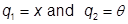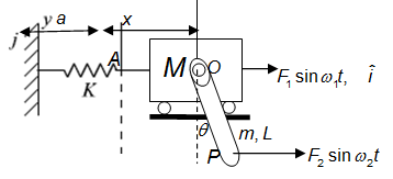 Let A is the position of the mass M at time t =0 when the link is in vertical position. Now it has come to position marked O after some time t . The motion can be completely described in terms of a physical coordinate system fixed at the fixed end. Also, one may use translation x of mass M and rotation θ of the link as the generalized coordinates. Here,