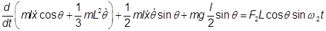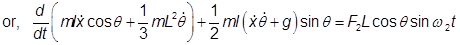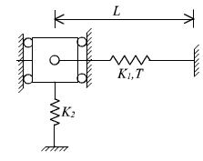 Example 2.5.2: Using Lagrange Principle find the equation of motion of the system shown in Figure 2.5.2 . Spring K1 is under pretension T0 for small amplitude of vertical Oscillation i.e.,