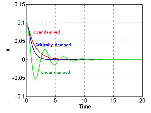 A Matlab code is given below to plot for response of a system under damped, critically damped and over damped conditions as shown in figure 6.3.1.