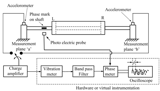 Figure 13.18 A schematic of experimental set-up for the dynamic balancing of a rotor