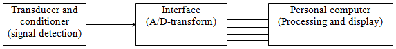 A basic measurement system consists of a transducer with a conditioner (which senses the signal, and converts to a measurable quantity like voltage or charge with some amplification), an analog-to-digital converter, and a processing and display unit as shown in Figure 14.8. We shall focus our attention in the error involved in transforming the analog signal to the digital signal.
