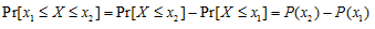 As the probability can be added, they can also be subtracted. The probability of any randomly selected displacement having a magnitude between two limits x1 and x2 can be written as