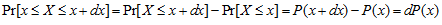 The probability that X lies between x and x + dx can be written as