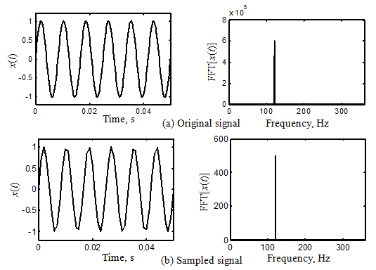 Solution: The sampling frequency is 1000 Hz, hence the Nyquist frequency will be 1000/2 = 500 Hz. Hence, we can be able to measure frequency below 500 Hz accurately that means frequency 120, 200 and 460 Hz will be measured accurately (Figs. 14.12-16.14). However, frequency 700 Hz will appear as 1000-700 = 300 Hz (Fig. 14.15) and frequency 800 Hz will also appear as 1000-800 = 200 Hz (Fig. 14.16). Frequency 900 Hz will appear as 1000-900 = 100 Hz signal (Fig. 14.17). So the captured signal will contain erroneous high amplitude of 200 Hz signal with an additional frequency of 100 and 300 Hz which is actually not present at all in the actual signal.